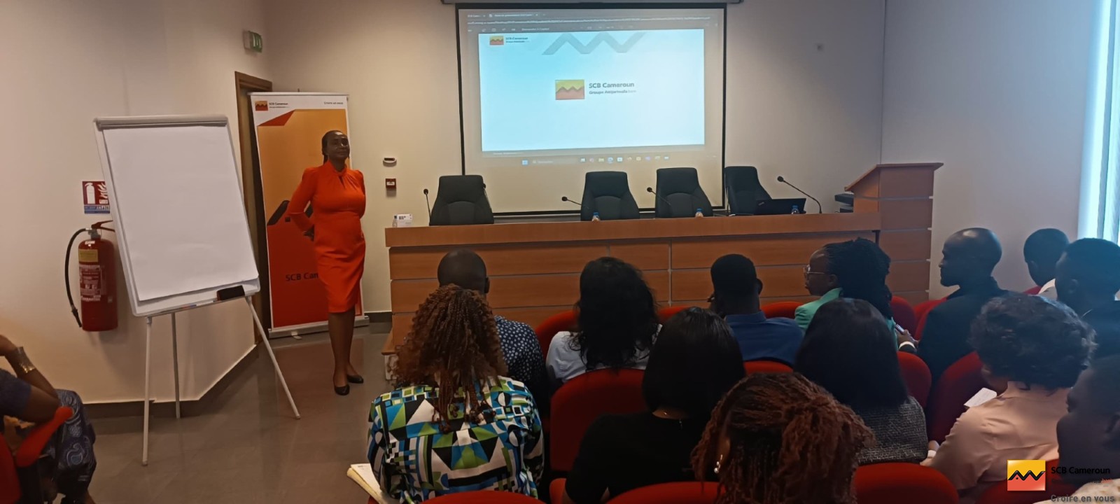 The opening ceremony featured a welcome speech by Ms Ernestine BONDJO, Director of Human Capital. She was followed by a speech from Ms Marie-Laure DJOMBI, from Communications and Quality, who gave a presentation on the bank and its CSR policy.