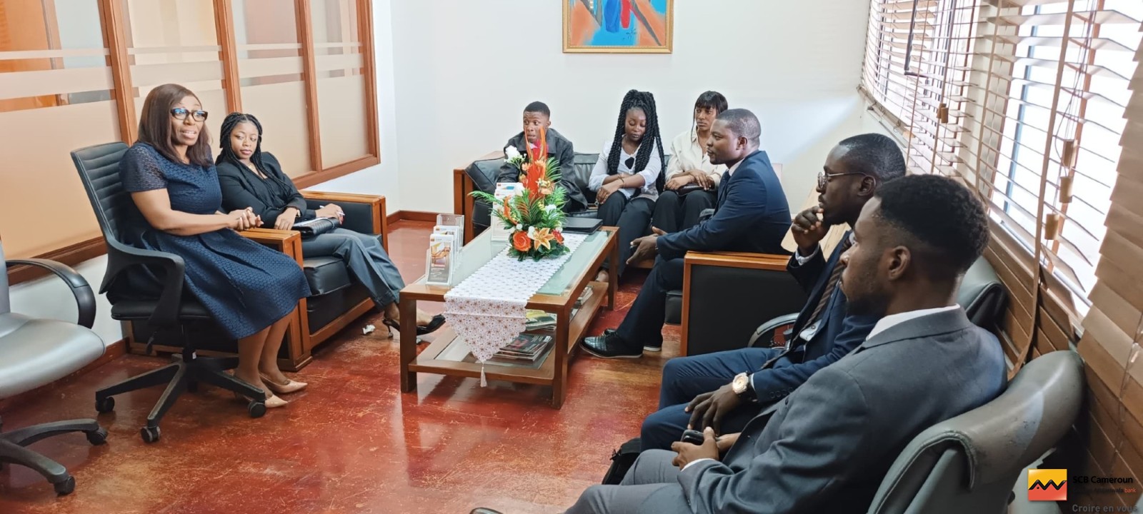 La délégation de SCB Cameroun, menée par son Directeur Général M. Alexandre BEZIAUD, accompagnée de Mme Viviane MVONDO, Directrice du Pôle Exploitation Commerciale ; Mme Michelle KOMME, Directrice PME & SFS et de M. Romuald ATENENA,